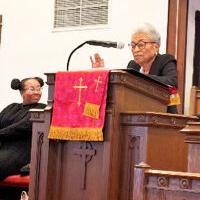 Rho Tau Omega Chapter members are pictured after the Founders Day Luncheon at High Rock Farm in Granville County. The Honorable Eva M. Clayton speaks at Locust Grove Missionary Baptist Church. The Honorable Judge Randolph Baskerville autographs his memoir …